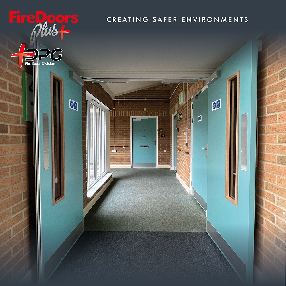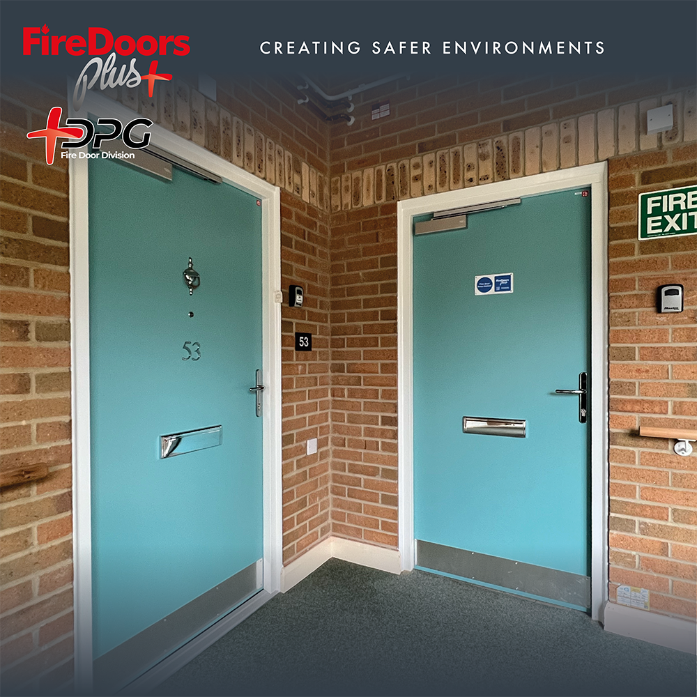 These stunning ‘pastel turquoise’ coloured fire doors have transformed this retirement complex in Suffolk. Our Fire Doors Division installed new flat entrance, double communal, single communal with side screens, and cupboard fire doors throughout the building.