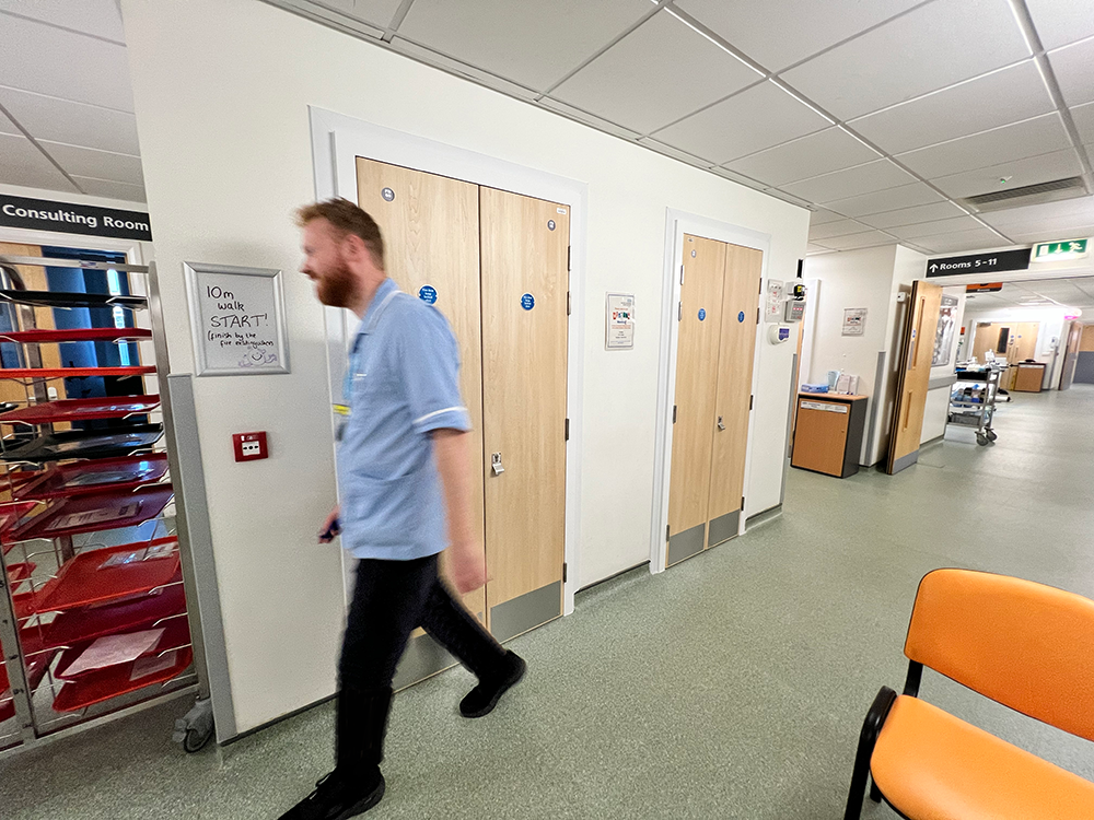 NHS double door being cleaned